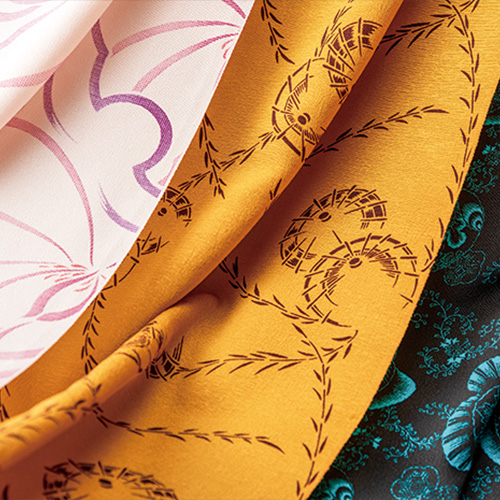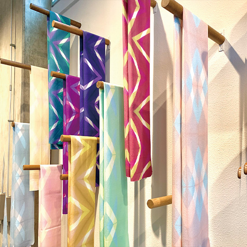 「彼らは、私の思いつきとも言えるアイデアを瞬く間に図案に落とし込み、たとえ実現困難な表現だとしても歴史に基づく蓄積知によりさまざまなアプローチでイメージに限りなく近づけ具現化します。 さらに驚くことに、地色や柄色の関係性を巧みに操り、多彩な「染め」の可能性まで提示してくれるのです。これまでも、彼らから着物の奥深さやモノづくりへの情熱を知らしめられた経験は数えきれません。