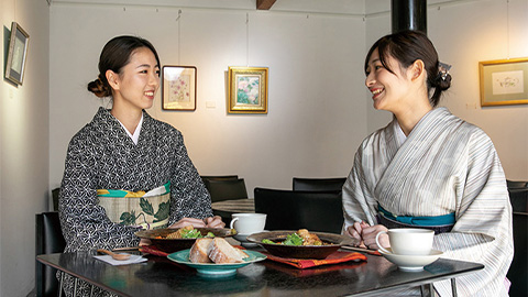 実際にお出掛けしてみたり、飲食をしてみたりとリアルなきものシーンを体験していただき、きものの所作も同時に学べるよう、実践を想定したカリキュラムを盛り込んでおります。