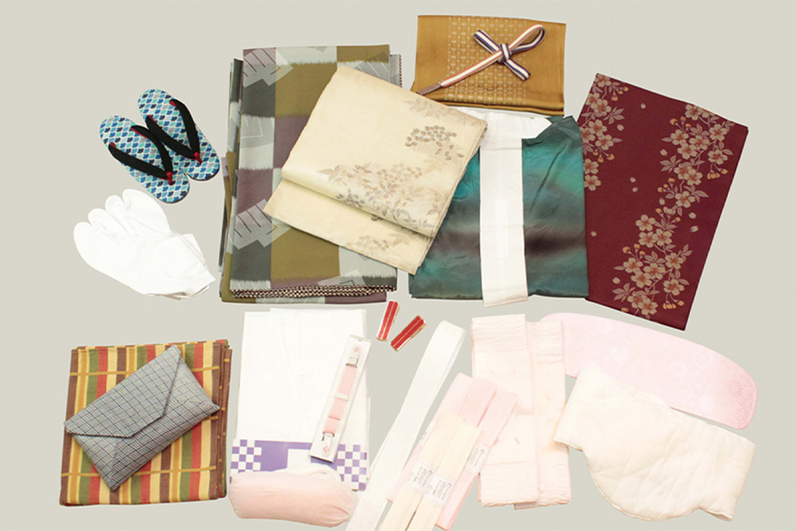 洗える着物・名古屋帯・袋帯・長襦袢を受講中お貸しする「きもの4点レンタルセット」を3,000円(税別)でご用意しております。